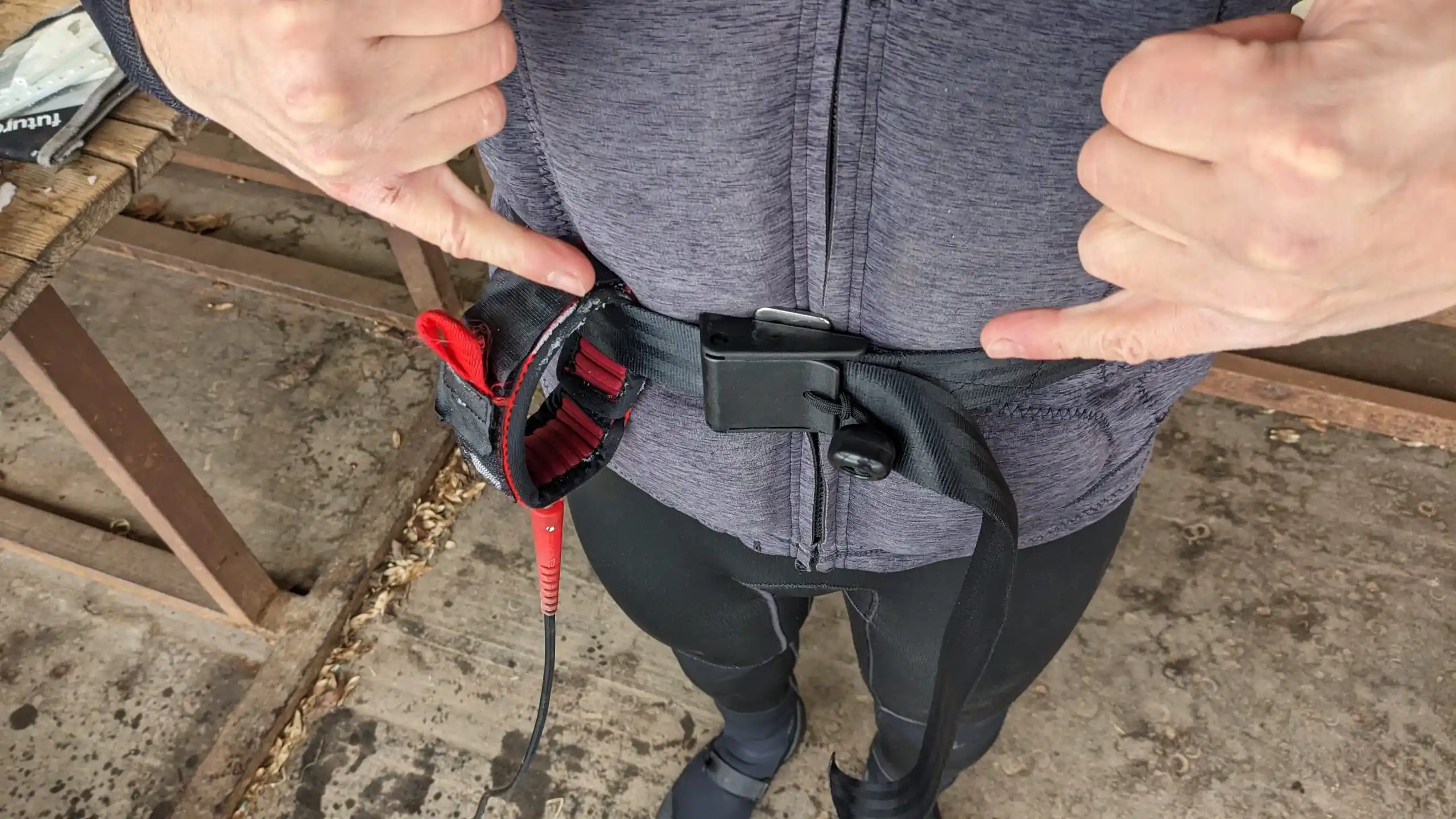 - Pořiď si opasek, který máš kolem pasu a leash si dáte na něj. Když tě to ve vodě zasekne, dosáhneš tak na sponu. Koupit si můžeš speciální vodácky od Hiko, na kterém je kulička, kterou to lehce otevřeš i ve stresu. Někdo jezdí s obyčejným pásem z Hornbachu. Od přátel z Rakouska teď taky zkoušíme handmade reflexní pásky na sucháč a jejich české kopie. Leash taky můžeš přichytit na vestu, zvlášť pokud má úchyty - ale tohle řešení se docela plete pod nohy a ve stresu se bude asi hůř otevírat.