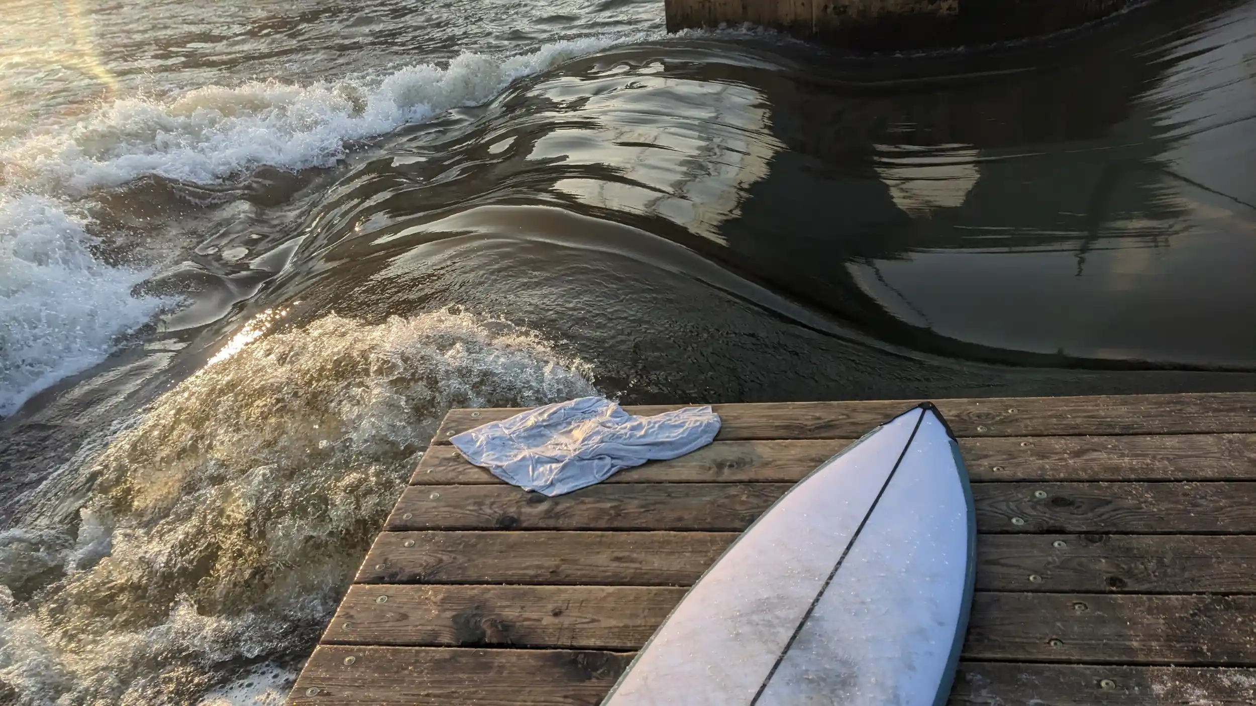 - Když pádlujete k molu po kterém se pak pokračuje k vlně, vždy se rozhlédněte jako na silnici. Po vodním toku který křižujete jezdí velké lodě a jsou dost potichu
